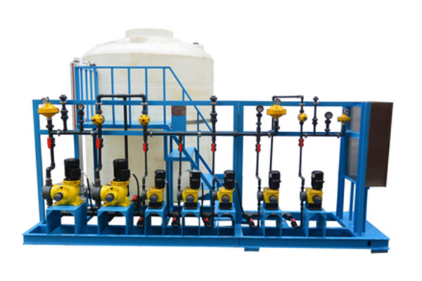 缓蚀剂(阻垢剂)加药装置主要包括药液溶配系统、计量投加系统、安全系统和控制系统四个部分。 固体药剂加入溶药箱内,然后按比例加入除盐水或凝结水搅拌溶解,由计量投加系统加到锅炉汽包内,投加控制可采用手动方式,也可依据上位系统输出的控制信号,进行随动控制,自动投加。